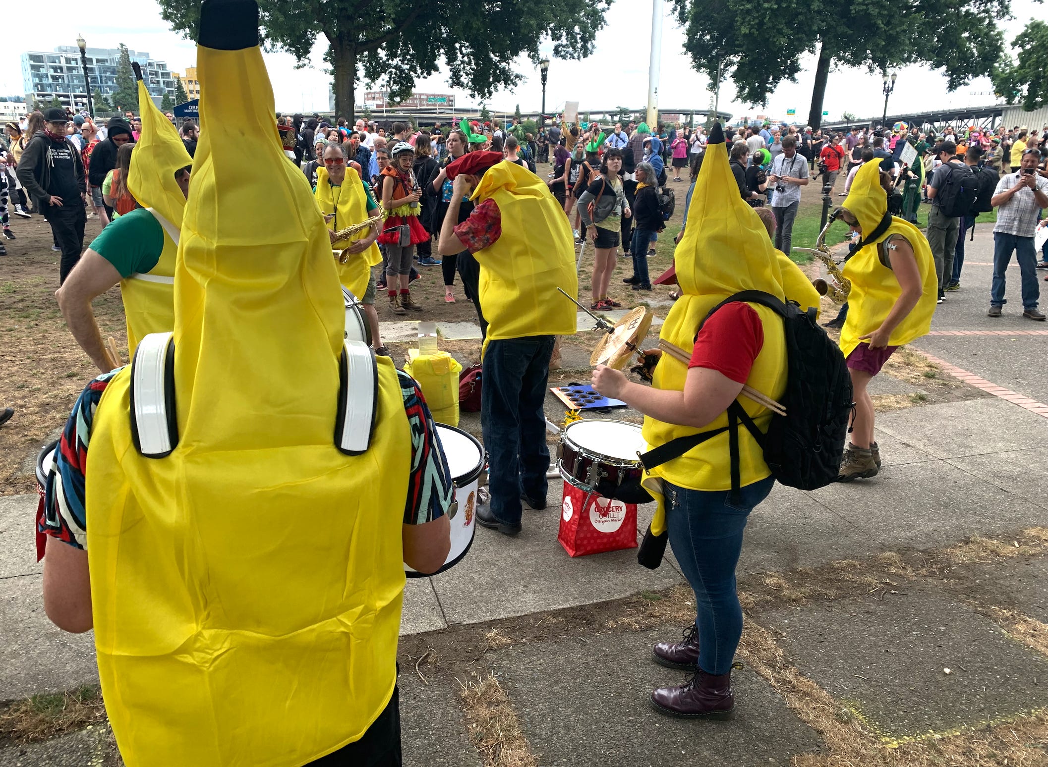 At the counter protest on August 17, 2019 I hung out with these women who’d shown up with other people from their church. We were joined in our little corner of the counter protest by a New Orleans second-line style brass band dressed in banana costumes who followed the fascists around, drowning out their hateful voices with their joyful funk.