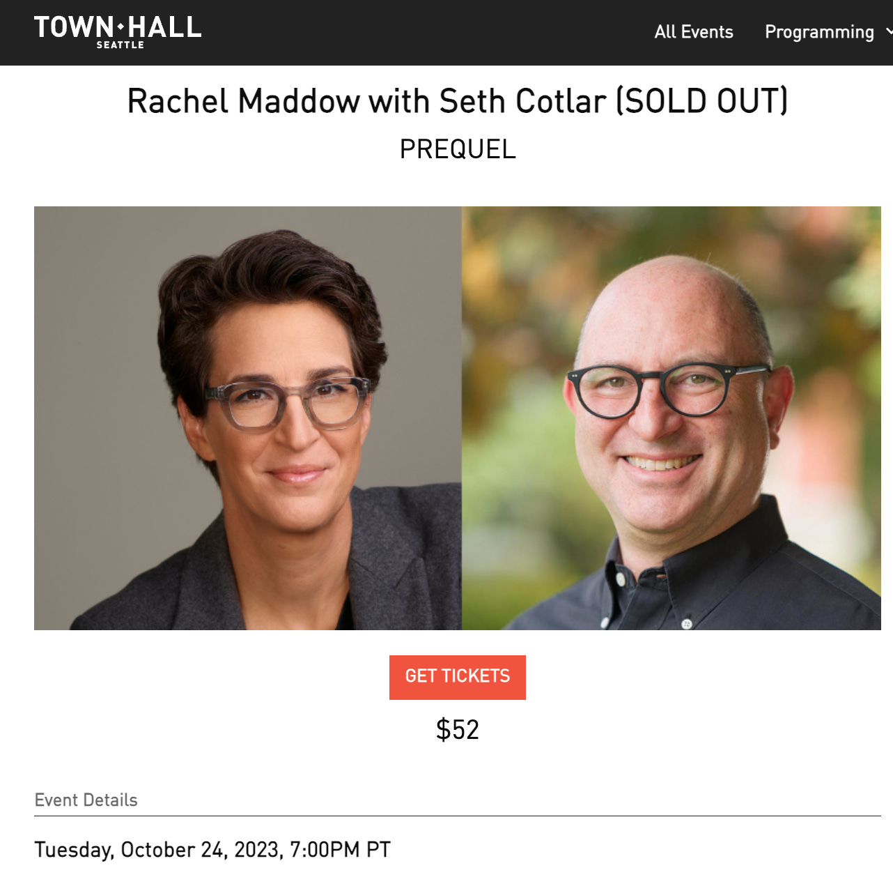 On Tuesday night I’ll be in Seattle interviewing Rachel Maddow. She’s currently on tour with her newly published book Prequel: An American Fight Against Fascism. If you’ve listened to her excellent podcast Ultra, you’ll be familiar with the basics of the story she tells more fully in this book about the rise of a multi-pronged fascist movement in pre-WWII America. It’s a well-told tale with plenty of contemporary resonances, but there’s one particular theme I want to draw out here.