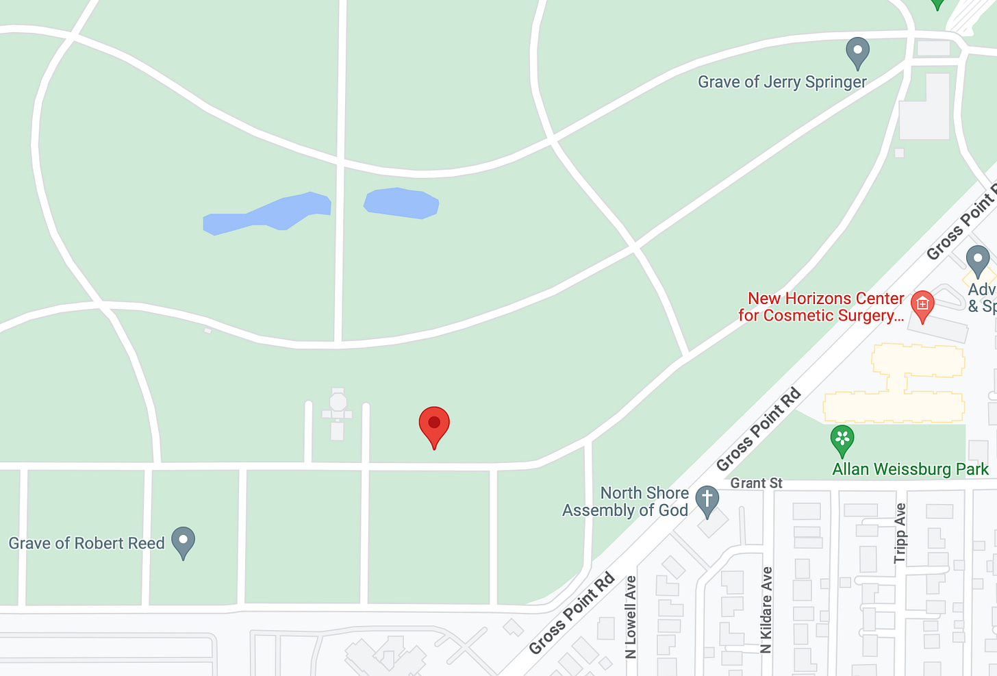 The appropriately-colored red pin marks the spot of Elizabeth Dilling’s grave.
