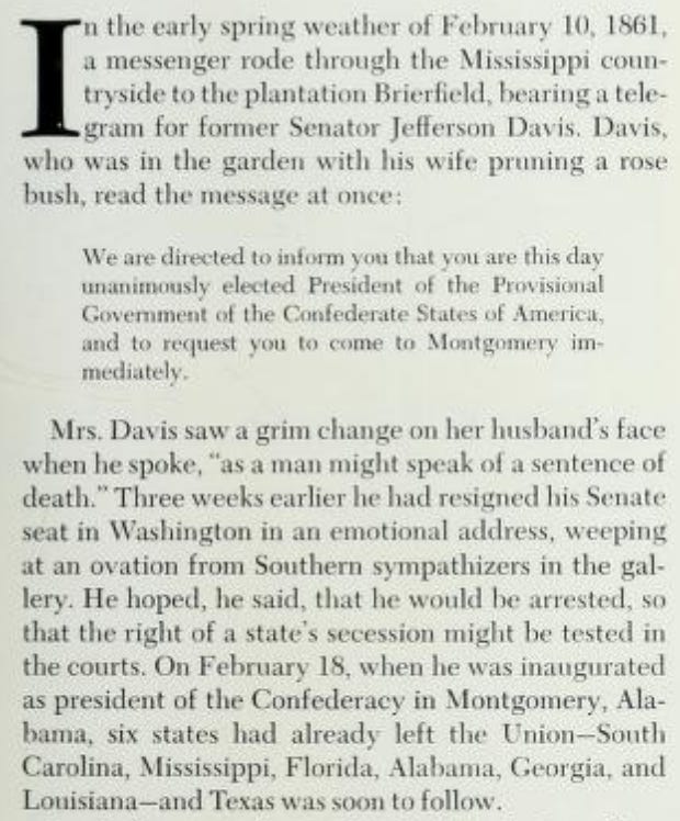 Note how the story opens, whose shoes the reader is asked to put themselves in, and what lessons I, as a young reader, was encouraged to draw about the character of Jefferson Davis and the meaning of the Civil War.